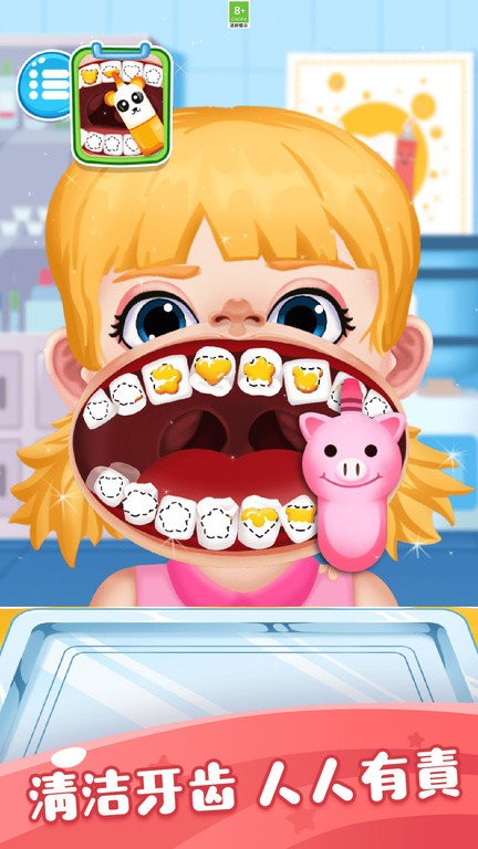 2、洁牙护牙,游戏内置专业的牙齿清洁系统,模拟真实的刷牙和洗牙过程,同时提供详细的牙齿护理知识讲解。