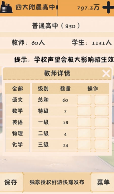 丰富的设施和教师类型,玩家可以自由搭配,打造个性化学校。
