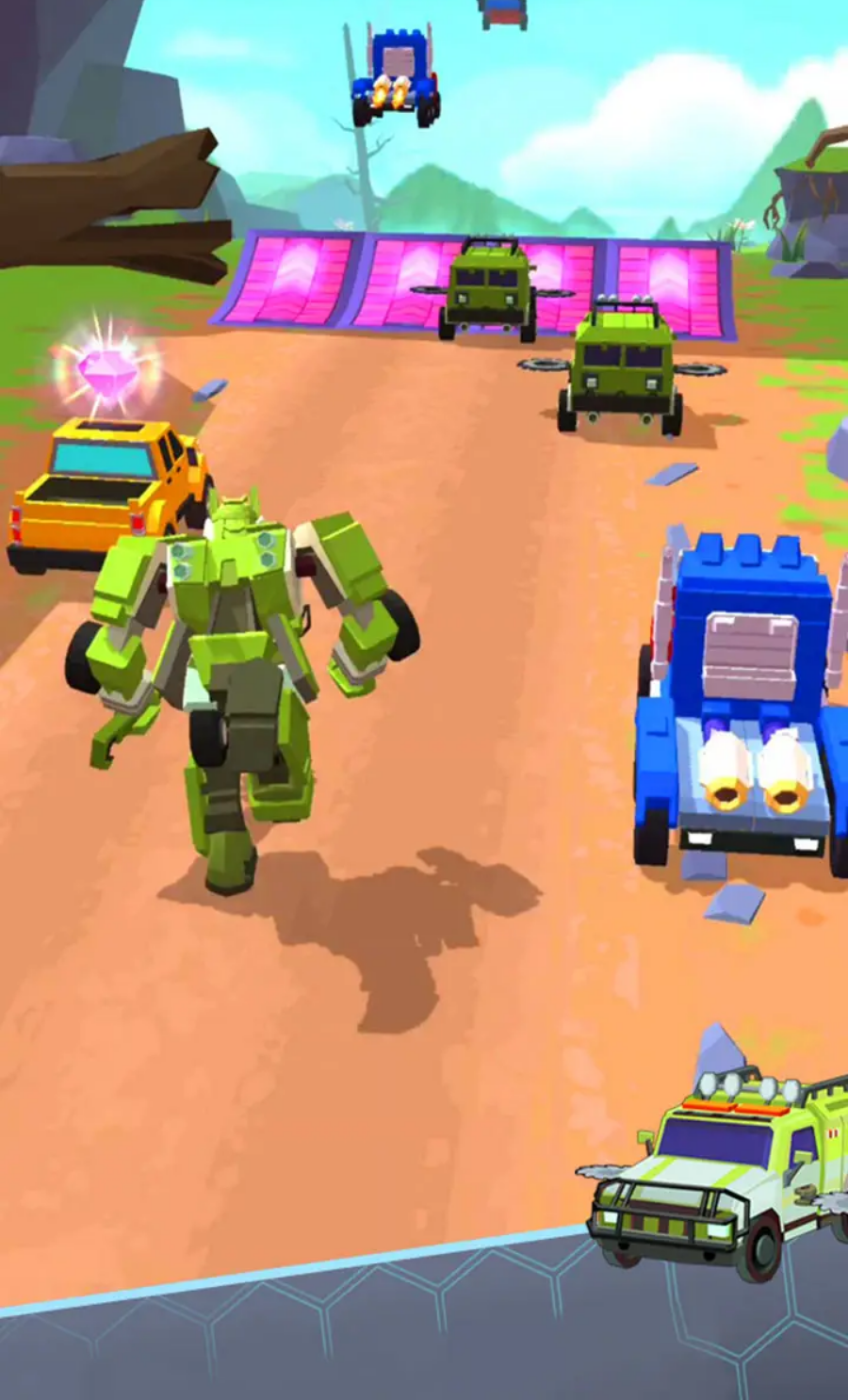 汽车人大作战狂野竞速是一款融合了竞速与战斗元素的刺激游戏,玩家将驾驶各种炫酷的汽车人在高速赛道上展开激烈角逐。游戏中不仅需要比拼速度,还要巧妙积累能量进行变身,与对手展开正面冲突,在战斗与竞速的双重挑战中坚持到底,成为最终的胜利者。