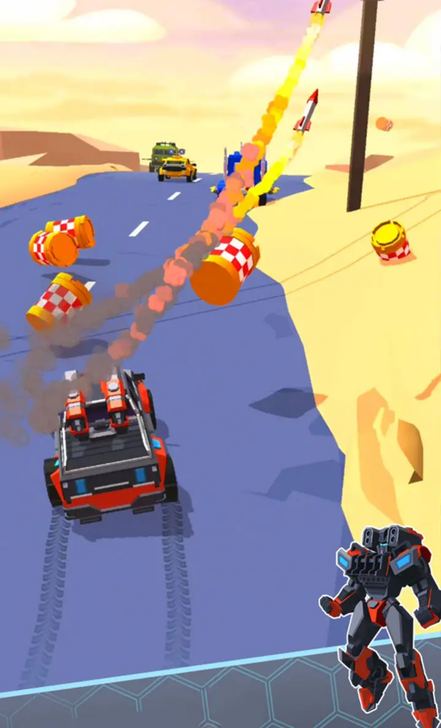 游戏提供了多样化的赛道环境,从龙卷风肆虐的郊区道路到幽深静谧的高速公路,再到白雪皑皑的冰雪街道,每个场景都经过精心设计,带来截然不同的驾驶体验。在这些赛道上,玩家将不可避免地与其他汽车人发生激烈碰撞,必须运用各种战术才能击败对手。游戏收录了超过10种独特的汽车人角色,每个角色都可以通过收集零件进行升级改造,包括武器系统、轮胎性能、车身硬度等多个方面。玩家可以根据自己的战斗风格打造专属的终极座驾,不给对手留下任何可乘之机。