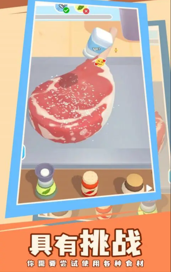 玩家在游戏中将帮助角色使用各种不同的材料和方式制作牛排,体验真实般的牛排制作模拟。你需要尝试使用各种食材,做出色香味俱佳的牛排,以满足不同顾客的要求。游戏还原了从选材到烹饪的全过程,你可以根据顾客的反馈不断改进配方,逐步成为真正的牛排大师。随着等级提升,还能解锁更多高级食材和烹饪设备。