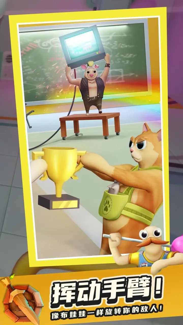 在疯狂的战斗中与其他玩家竞争,直到只有一个获胜者!游戏采用直观的触屏操作,通过滑动屏幕控制角色移动和攻击方向。挥动你的手臂,向左和向右出拳,像布娃娃一样旋转你的敌人,并在联盟中向上移动!游戏支持多种操作模式,包括重力感应和虚拟摇杆,满足不同玩家的操作习惯。太有趣了!不要忘记大量的武器选择,从平底锅到火箭筒应有尽有,这些武器将帮助您在般的战斗中夺冠。游戏还设有特殊技能系统,每个角色都拥有独特的必杀技,合理运用可以扭转战局。