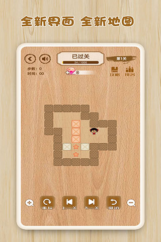 移动小人:点击目标位置,如果没有障碍物阻挡,角色会自动寻路到达目标点。推动箱子:如果想向右推动箱子,先点击箱子左侧位置,再点击箱子即可完成推动,其他方向的操作方法类似。切换关卡:可以通过上一关、下一关、上一未过关、下一未过关等多种方式自由切换关卡,方便玩家随时调整挑战进度。