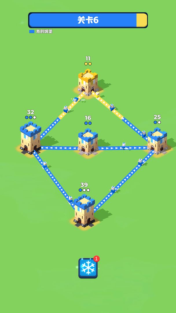 游戏的核心玩法围绕着领土扩张展开,你需要同时兼顾进攻与防守。通过滑动屏幕将你的兵力从己方塔楼输送到相邻的敌方塔楼,当你的兵力占据优势时就能成功占领。随着占领的塔楼增多,你的兵力产出速度也会提升。游戏设有多种胜利条件,包括完全占领地图、在限定时间内守住关键据点等。每个关卡都经过精心设计,难度循序渐进,让玩家能够逐步掌握游戏的精髓。