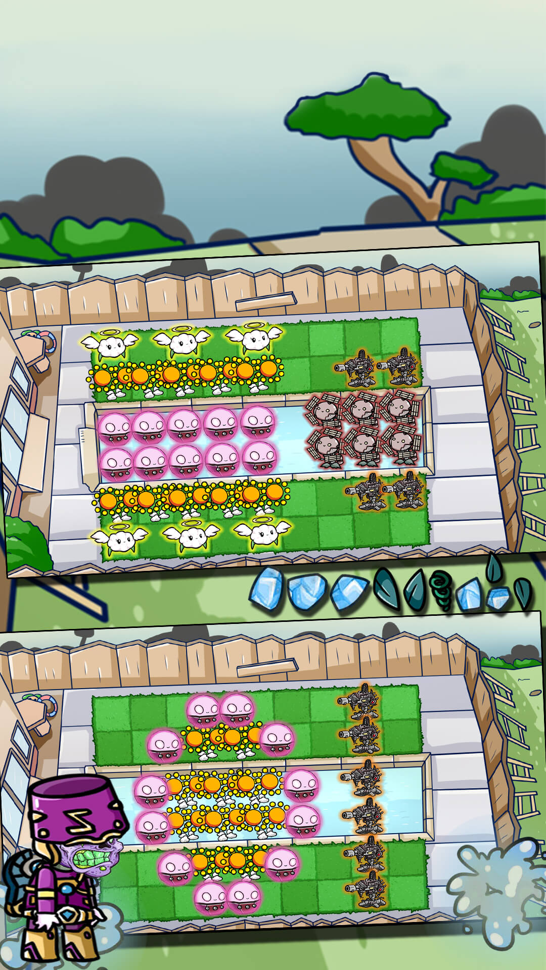 游戏最突出的特色在于其完美的策略性与娱乐性的平衡。看似简单的植物放置玩法蕴含着丰富的战术变化,每个关卡都需要玩家动脑思考最优解。同时,卡通风格的画面和幽默的角色设计又让游戏过程充满欢乐,不会给玩家带来太大压力。