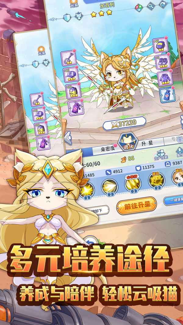 《喵星传说》是一款充满治愈感的猫咪拟人化养成手游,带你进入梦幻般的喵星大陆。在这个奇妙的世界里,玩家将化身猫咪训练师,通过收集和培养各具特色的喵星人卡牌,组建专属猫咪战队。游戏采用清新可爱的画风,融合了卡牌收集、角色养成和策略战斗等多元玩法。无论是喜欢休闲养成的玩家,还是热衷策略搭配的冒险者,都能在这里找到乐趣。独特的猫咪拟人化设计让每张卡牌都拥有鲜明的个性,等待你来发掘它们背后的故事。