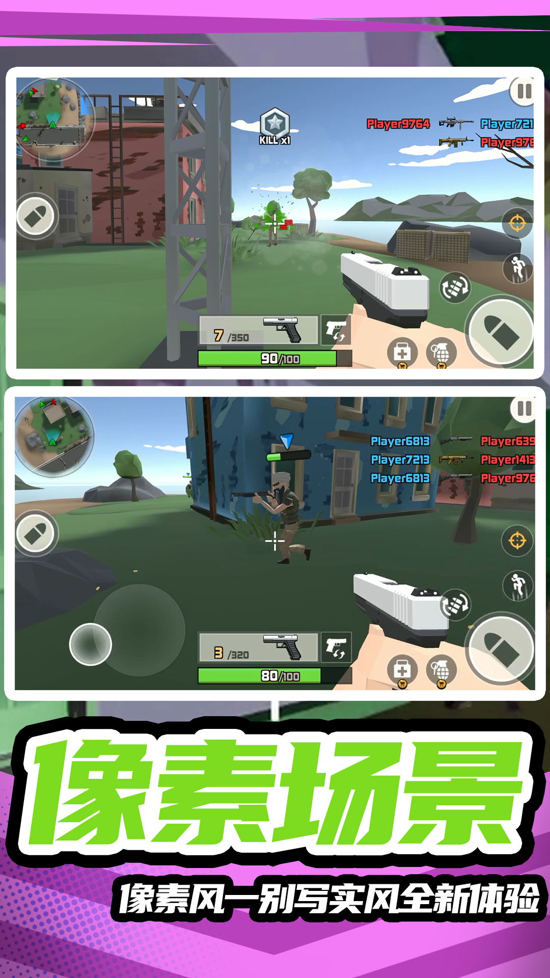 这款像素风格的射击游戏将玩家分为两个阵营进行对抗,不仅考验个人枪法,更强调团队配合与战术策略。游戏采用简单直观的操作方式,即使是新手玩家也能快速上手。独特的自动瞄准系统让射击变得更加轻松,同时保留了手动瞄准的精准度,满足不同水平玩家的需求。游戏中的武器系统非常丰富,从经典手枪到重型机枪,每种武器都有独特的属性和使用技巧。玩家可以通过不断练习来掌握各种武器的特性,在战场上发挥最大威力。