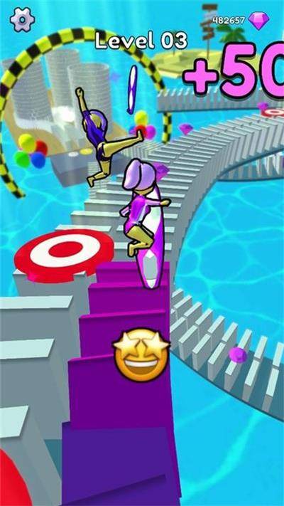 掌握角色的冲浪技巧,跨越危险的多米诺骨牌,在高速滑行中完成各种高难度动作。