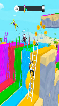 在《爬梯大乱斗》中,所有玩家都站在同一起跑线上,公平竞技。游戏的核心玩法是比拼速度与敏捷性,只有兼具这两项能力的玩家才能脱颖而出,赢得比赛胜利。玩家需要收集散落在赛道上的梯子来完成爬行任务,通过精准的点击操作控制角色在梯子上快速前进。游戏还加入了创新的喷漆背包系统,玩家可以改变赛道颜色来获得特殊效果,甚至能短暂提升移动速度,为比赛增添更多策略性。随着游戏的进行,赛道难度会逐渐提升,出现更多需要巧妙应对的机关和障碍。