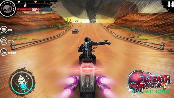 游戏中的追逐与战斗场面异常激烈,玩家需要灵活操控摩托,冲出敌人的包围圈。通过升级摩托属性,你可以提高逃离距离,增强生存能力。10种不同的摩托各具特色,搭配不同的升级项目,让你的战斗风格更加多样化。合理使用氮气加速和闪避技能,能够让你在高速行驶中避开敌人的攻击,保持领先优势。此外,游戏还加入了狂暴的龙卷风等自然障碍,为竞速增添了更多变数和挑战。