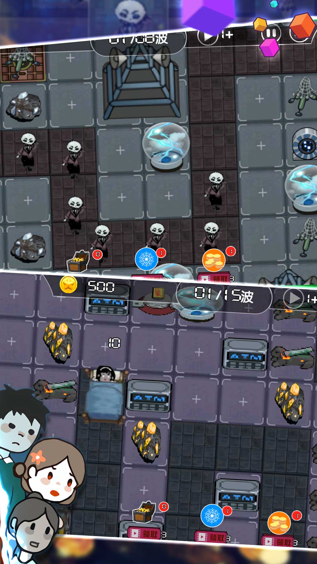 资源设施是玩家获取金币的主要途径,其中床是最基础的设施,每个房间必有一个。床每秒可以产出1金币,升级后产出翻倍,但所需的金币和电力也会相应增加。此外,矿是中期的主要资金来源,铜矿需要8金币建造,而更高级的银矿和金矿则需要更多资源。不过,由于炮台的攻击力过于强大,很多玩家甚至还没来得及升级矿,猛鬼就已经被消灭了。