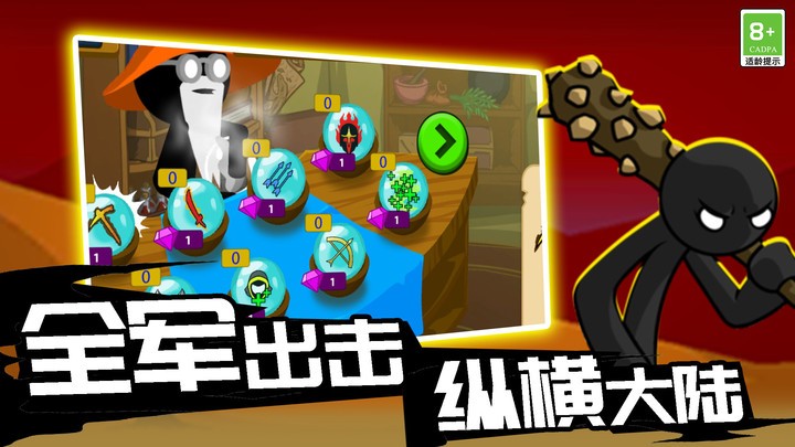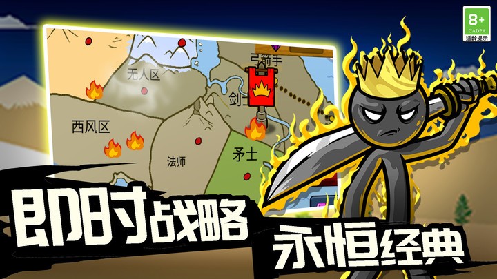 -建立强大的军队:购买矿工收集黄金,用收集来的黄金招募火柴人战士,组建火柴人军队。随着游戏进程,可以解锁弓箭手、骑士等高级兵种,打造多元化战斗阵容。