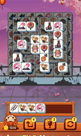游戏采用经典的消除玩法,玩家需要将三个相同的方块进行配对消除。独特的置物格设计增加了游戏的策略性,当遇到瓶颈时,可以使用各种有趣的道具来化解危机。