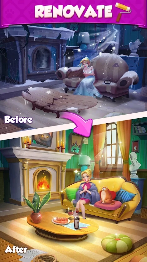 游戏为玩家准备了丰富的玩法内容:引人入胜的主线剧情充满意想不到的转折,每个章节都隐藏着令人惊喜的秘密等待发掘;房屋装修系统提供上百种风格各异的装饰物品,玩家可以根据剧情发展打造独具特色的主题房间;消除玩法包含数十种创意十足的谜题类型,从经典三消到创新玩法应有尽有;特别的投币机系统让每次游戏都充满期待,随机奖励机制带来无限可能;社交互动玩法支持玩家与好友组队挑战,通过合作或竞技赢取稀有装饰道具。