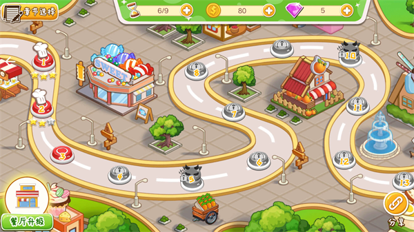 餐厅模拟经营体验,清新的卡通游戏画面,丰富的经营玩法。除了日常经营外,玩家还可以参与特殊任务挑战,完成目标后获得稀有食材和装饰道具。