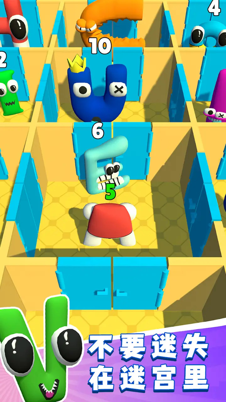 字母表房间迷宫是一款充满童趣的益智逃生游戏,采用上帝视角的卡通风格设计。玩家将置身于错综复杂的迷宫中,每扇门后都潜藏着危险的字母怪兽。这些怪兽头顶显示着不同数字,玩家需要策略性地击败数字比自己小的怪兽,并吸收它们的数字能量。随着游戏进程,玩家将不断成长壮大,最终挑战迷宫深处的终极BOSS。游戏巧妙地将数学计算与迷宫探索相结合,带来独特的益智冒险体验。