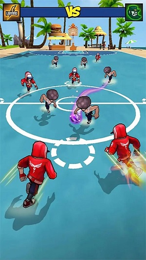 每位角色配置3种专属技能,支持组合触发团队连锁技,如空中接力接火焰扣篮
