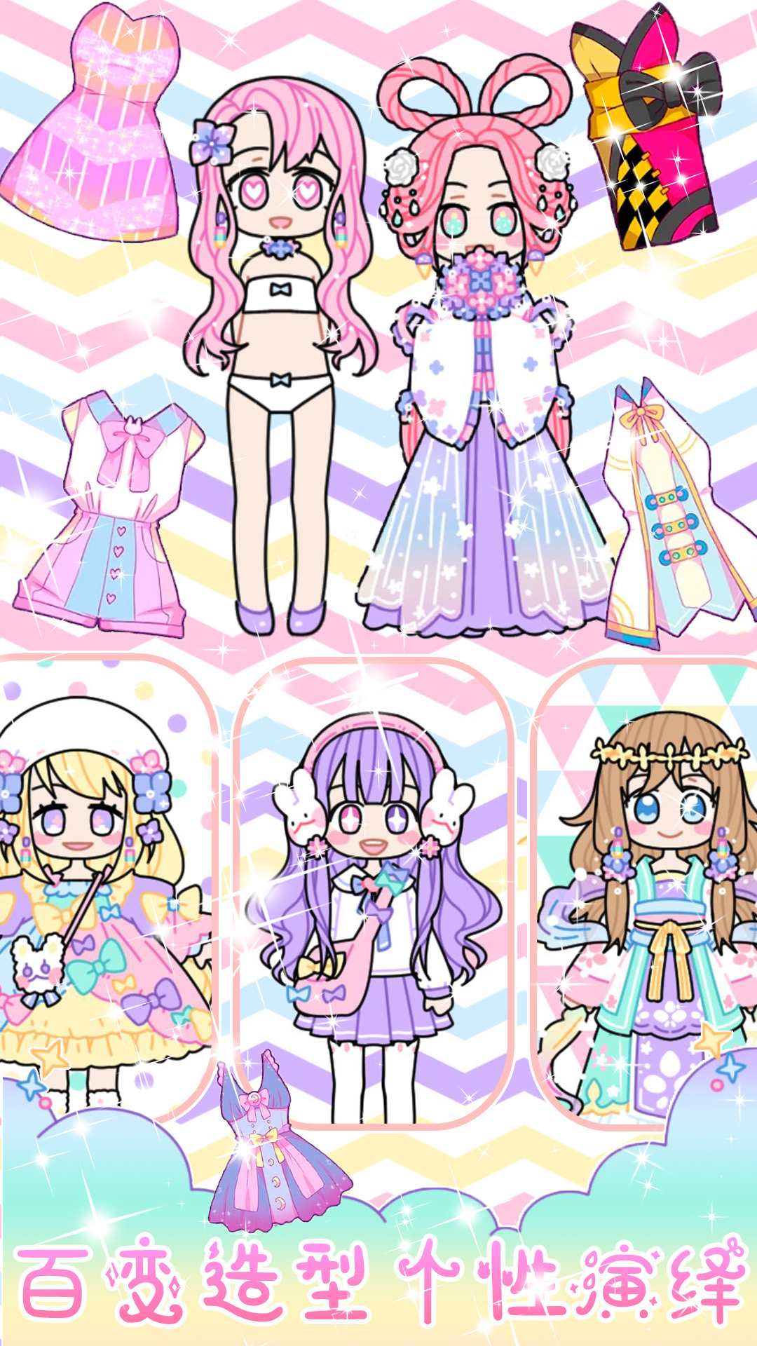 支持玩法,随意更换角色的上衣、下装、鞋子、配饰等等;每个部位都有数十种选择,组合方式千变万化。服装种类繁多,包括日系、欧系、森系、系等多种风格,满足不同玩家的需求;每种风格都有独特的魅力。有丰富多彩的道具,如背景、服饰、音乐等,可以自由设计你的和场景;你还可以为角色选择不同的表情和姿势,让搭配更加生动有趣。游戏还设有拍照功能,让你可以随时保存和分享自己的得意作品。