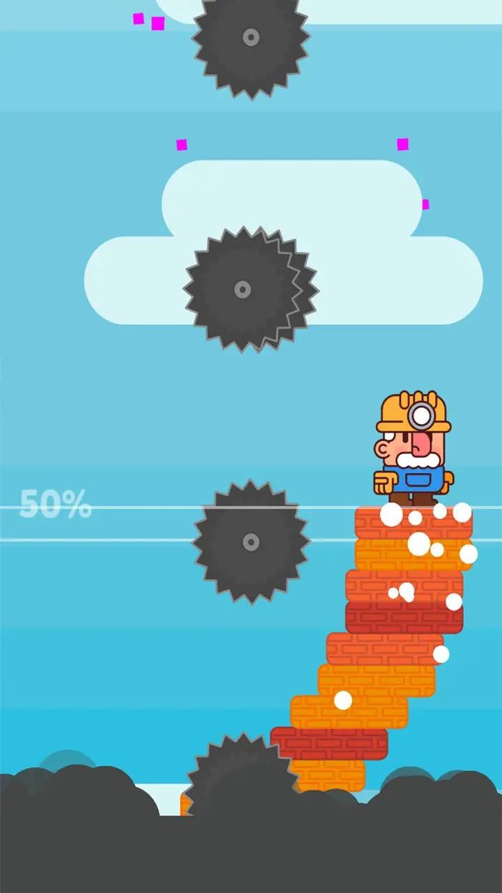 将砖块堆向天空,并开辟通往顶部的道路,还有很多的锯子会阻挡和伤害你。游戏中的障碍物设计巧妙,既有静态的陷阱,也有动态的威胁,考验玩家的反应能力和策略思维。此外,随着高度的增加,砖块的堆叠难度也会逐渐提升,为玩家带来持续的挑战。