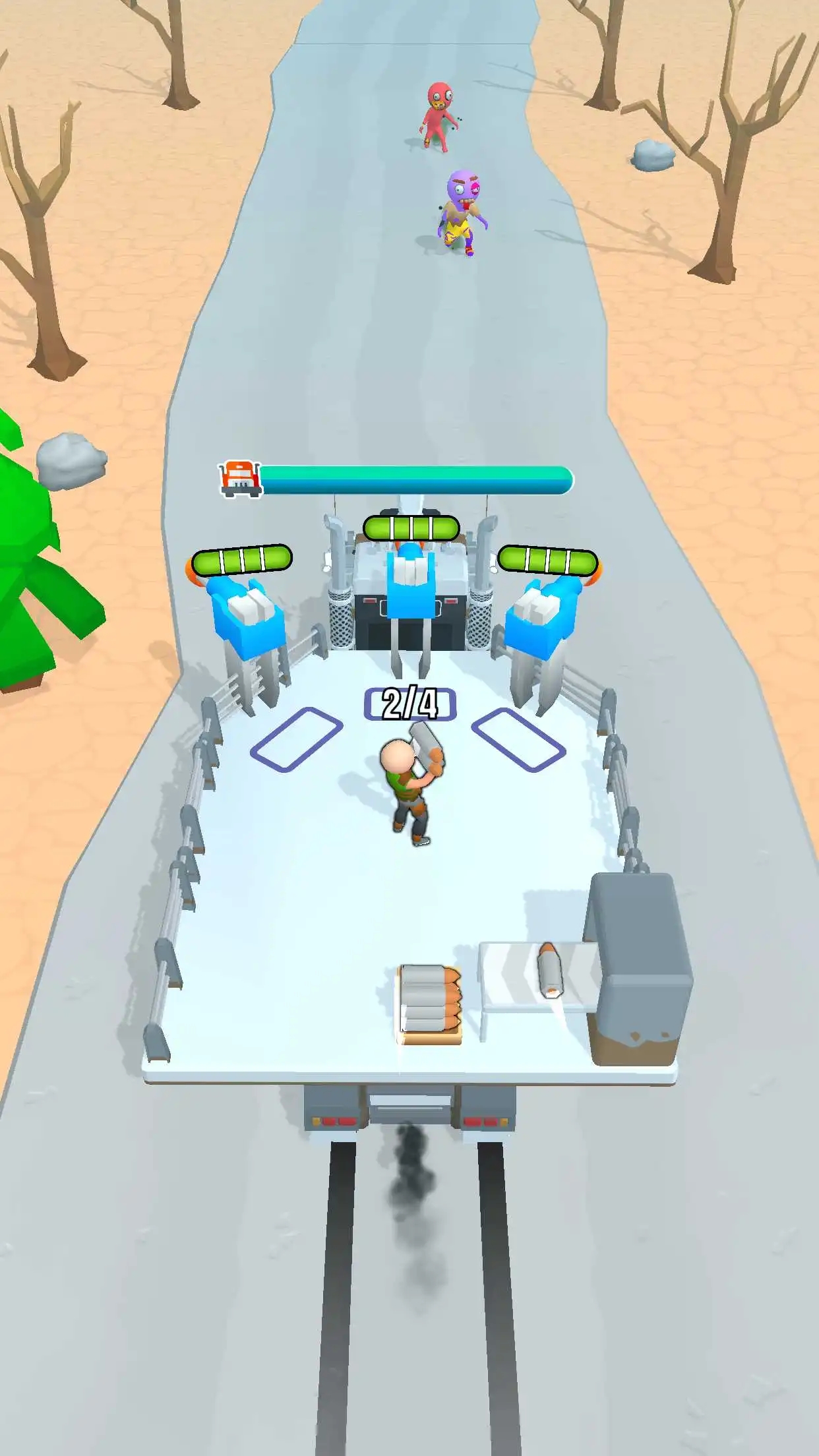 这是一款融合了塔防策略、载具驾驶和即时战斗的复合型游戏。玩家不仅能布置静态防御设施,还能亲自驾驶改装卡车在战场上驰骋,使用车载武器进行精准打击。游戏包含故事模式、生存模式和竞技场模式三大玩法,其中竞技场模式允许玩家设计自己的防御阵型与其他玩家一较高下。每个模式都设有独立的成就系统和排行榜,满足玩家的收集欲和竞争心。