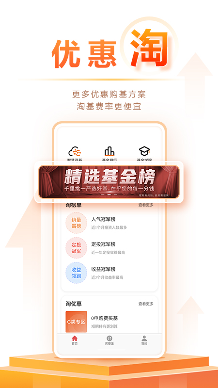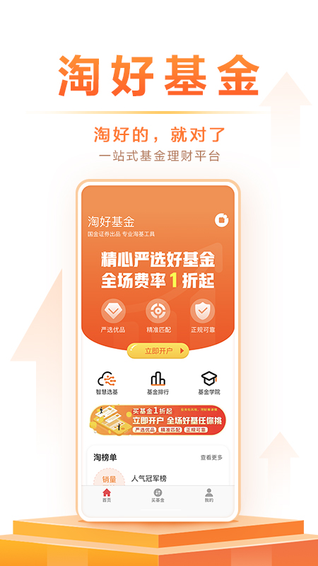 淘好基金App作为国金证券旗下的一站式基金服务平台,集基金开户、交易、理财服务于一体。平台提供丰富的淘基工具,包括智能选基、基金排行、基金学院等功能模块,让您的投资决策更加科学高效。特别值得一提的是,平台申购费用低至1折起,大幅降低投资成本,是您实现财富增值的智能投资伙伴。