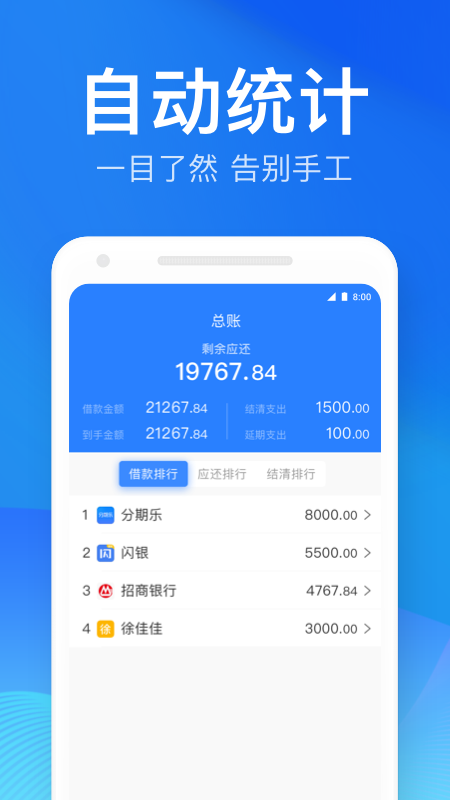账单管家:支持上百家银行信用卡、主流借贷平台以及亲友借款的账单管理,让所有账单一目了然。