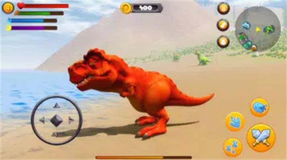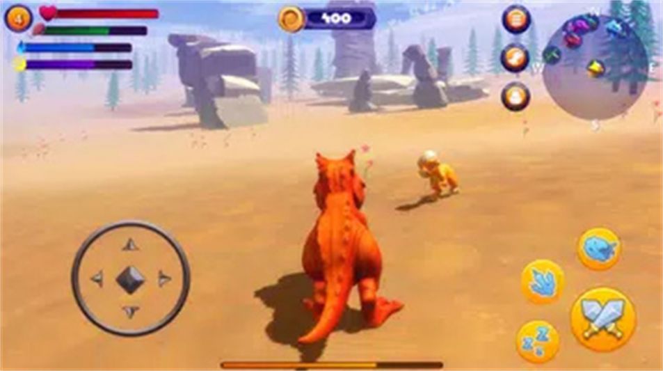 震撼的3D画面将玩家带入一个栩栩如生的恐龙世界,每一处细节都经过精心打磨,让玩家仿佛置身于史前时代。场景设计极为精细,从茂密的丛林到荒凉的沙漠,每个场景都各具特色,为玩家带来不同的视觉与氛围体验。游戏还融入了基于元素的适应性系统,玩家需要根据不同的环境调整策略,考验玩家的应变能力和智慧。