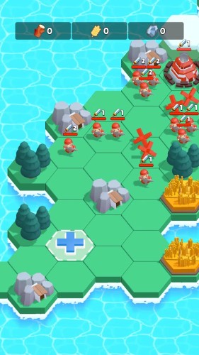 在迷你岛屿战争中,建造兵营是第一步,玩家可以招募士兵,提升防御和攻击能力。科技研究则能为基地带来各种增益效果,比如提高生产效率或增强士兵战斗力。一旦基地建设完成,玩家就可以开始征服其他岛屿。游戏中有大量岛屿等待探索,每个岛屿都有独特的地形和资源,占领它们将为你带来更多优势。