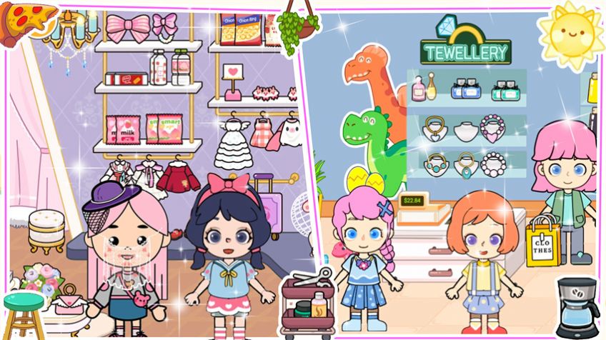在樱桃小镇装扮世界中,玩家可以尽情展现自己的时尚品味和设计才华。游戏提供了上千种不同风格的服装、饰品和发型,让你可以打造出与众不同的角色形象。除了角色装扮外,城镇建设也是游戏的重要玩法之一。你可以选择各种风格的建筑,如温馨的小木屋、复古的巧克力店、清新的果汁摊等,并通过添加装饰品来打造独具特色的小镇景观。游戏中的物品设计灵感来自世界各地的文化元素,涵盖了古典与现代、东方与西方等多种风格,为玩家提供了无限的创作可能。