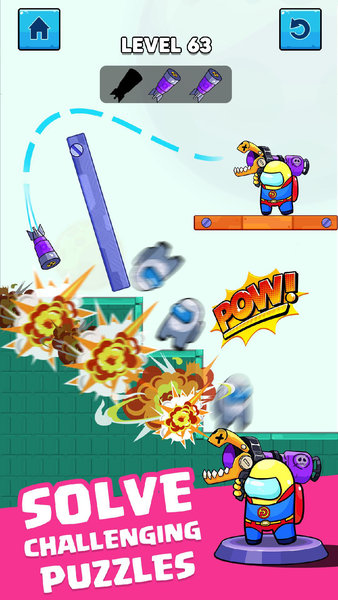 这款游戏不仅是智力的考验,更是释放压力的绝佳选择。在游戏中你可以尽情发泄,享受无与伦比的快乐体验。根据不同的战场情况,采取最合适的战术策略,选择最适合当前局势的火箭类型,投出完美的直线,给敌人致命一击。