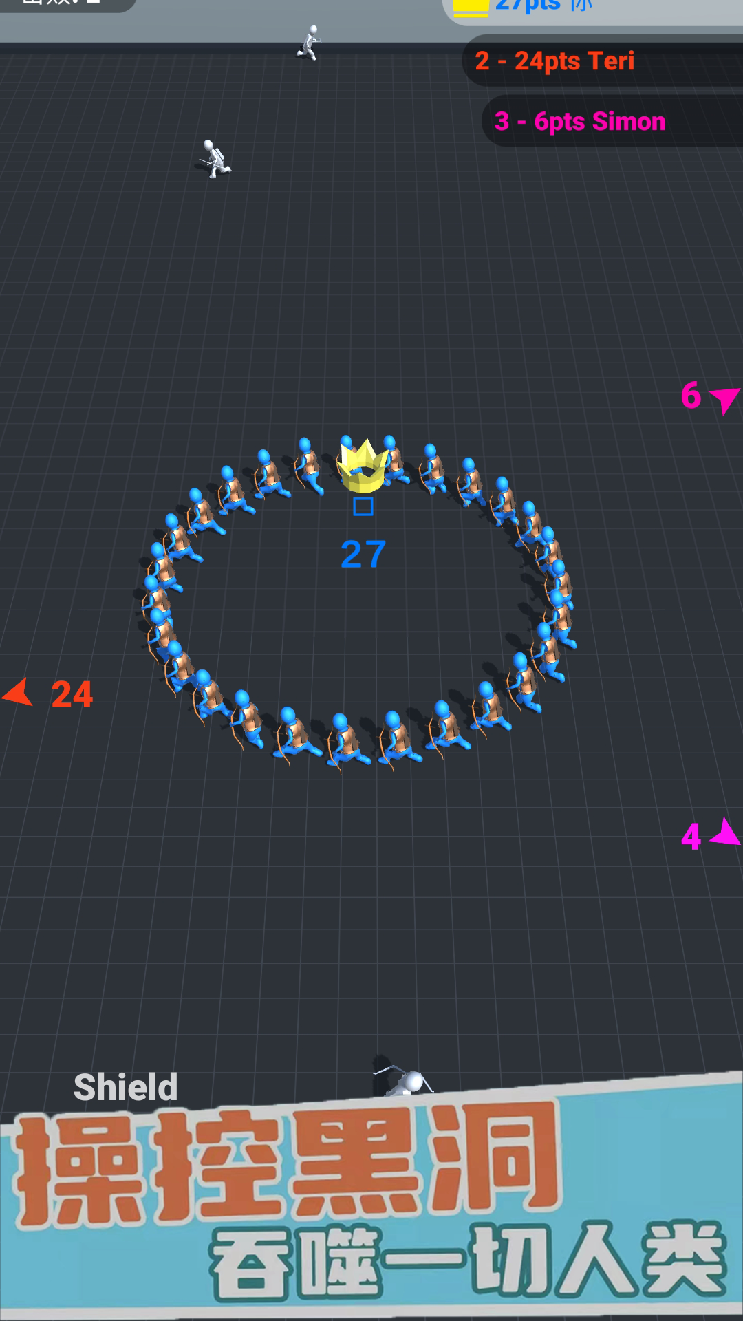 游戏操作很简单,用触摸屏幕控制弓箭手的走位就行了。精准的移动是躲避敌人攻击的关键。进入游戏后,先设置个性化昵称,而后点播放按钮,开始你的冒险之旅。起初您只有一个弓箭手,白色的弓箭手是可以直接吸纳进部队的。注意观察战场局势,合理规划吞并路线。等您的弓箭手部队人数到了一定规模,就能去跟其他队伍PK了,歼灭其他队伍后,倒下的弓箭手是能够吸纳到自己部队。每局比赛一分钟,结束后,哪支部队的弓箭手人数多,哪去部队是冠军。记住,数量优势往往能决定胜负。