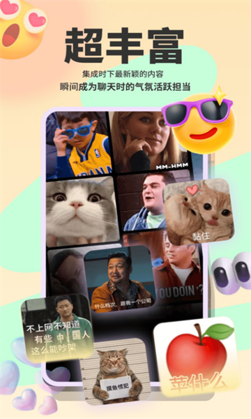 创意十足的设计团队每月推出上百款原创表情,紧跟网络热点和流行文化。所有图片都经过专业优化处理,确保在不同设备上都能呈现高清画质。每周更新的表情专题包含节日限定、明星同款等特色内容,让你永远走在斗图潮流前沿。独特的"表情实验室"功能还能让你参与新表情的设计投票,成为表情创作的参与者。