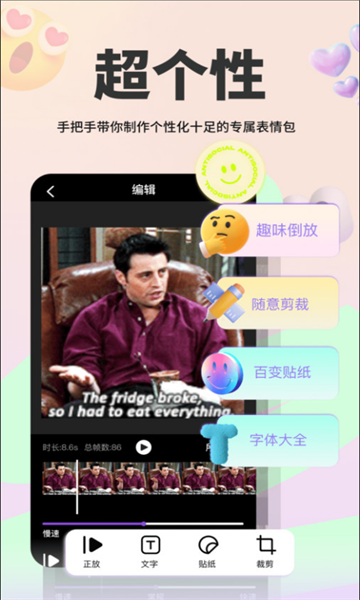 涂鸦功能让你可以随心所欲地在表情包上添加文字、贴纸和手绘图案,打造独一无二的专属表情。强大的表情搜索功能采用智能语义识别技术,不仅能按关键词查找,还能通过图片识别匹配相似表情。视频片段导入功能支持将手机中的短视频快速转换为GIF表情,还能添加特效和字幕,让你的动态表情更加生动传神。