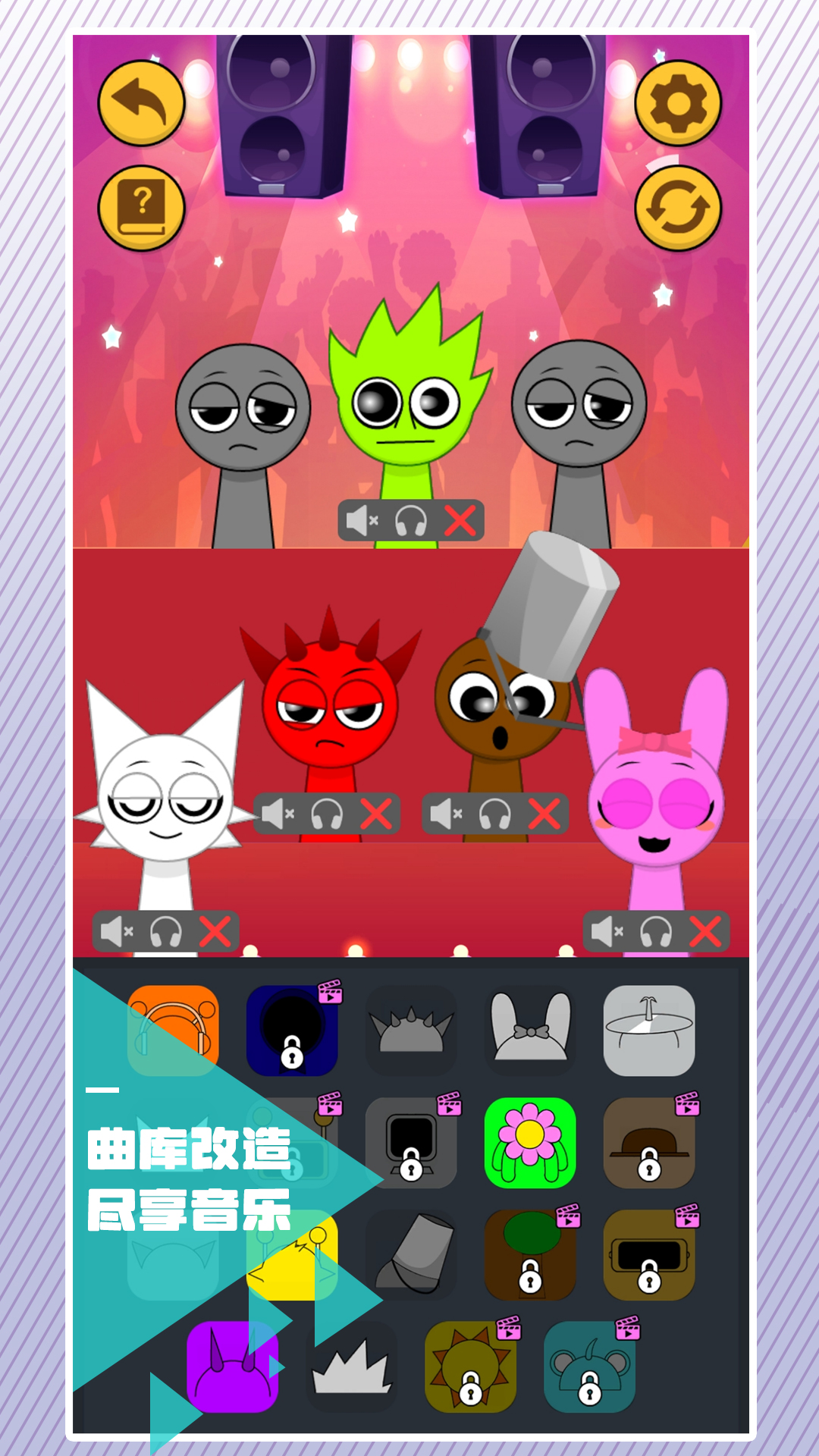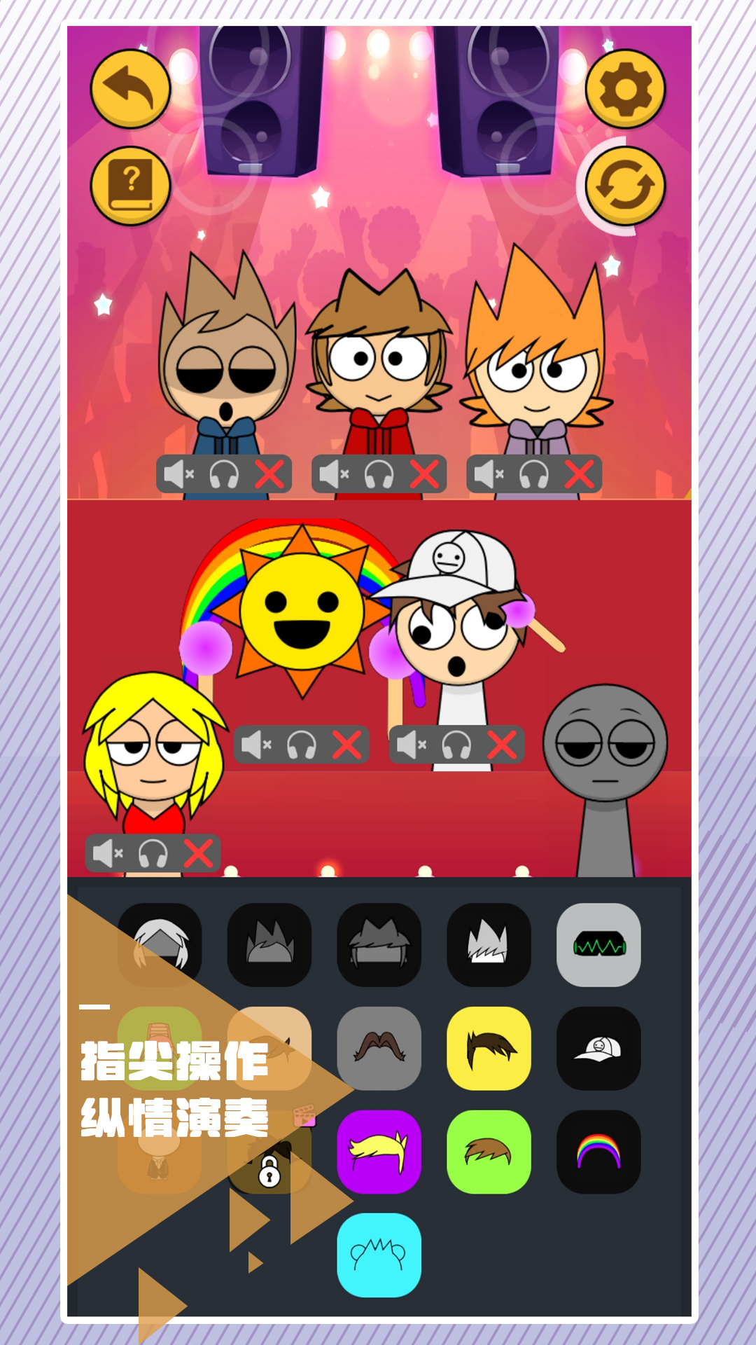 在这款创意音乐游戏中,您将化身为一名音乐制作人。首先从丰富的音效库中挑选最能触动您心灵的节奏和旋律,无论是激昂的鼓点还是柔和的钢琴声都能找到。接着将选中的声音拖拽到对应的角色位置,通过简单的点击就能听到这些元素如何完美融合。最后,当您按下播放键时,一首由您亲手打造的独特乐章就会震撼登场,让您体验当DJ的乐趣。