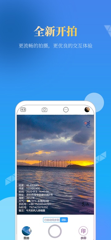 该功能支持现场拍摄图片或视频时自动添加多重水印信息,包括精确的GPS定位数据、详细地址、拍摄时间日期、经纬度坐标、海拔高度、当前天气状况、设备IMEI码以及用户手机号等。这些信息将直接嵌入到媒体文件中,确保记录的完整性和真实性。