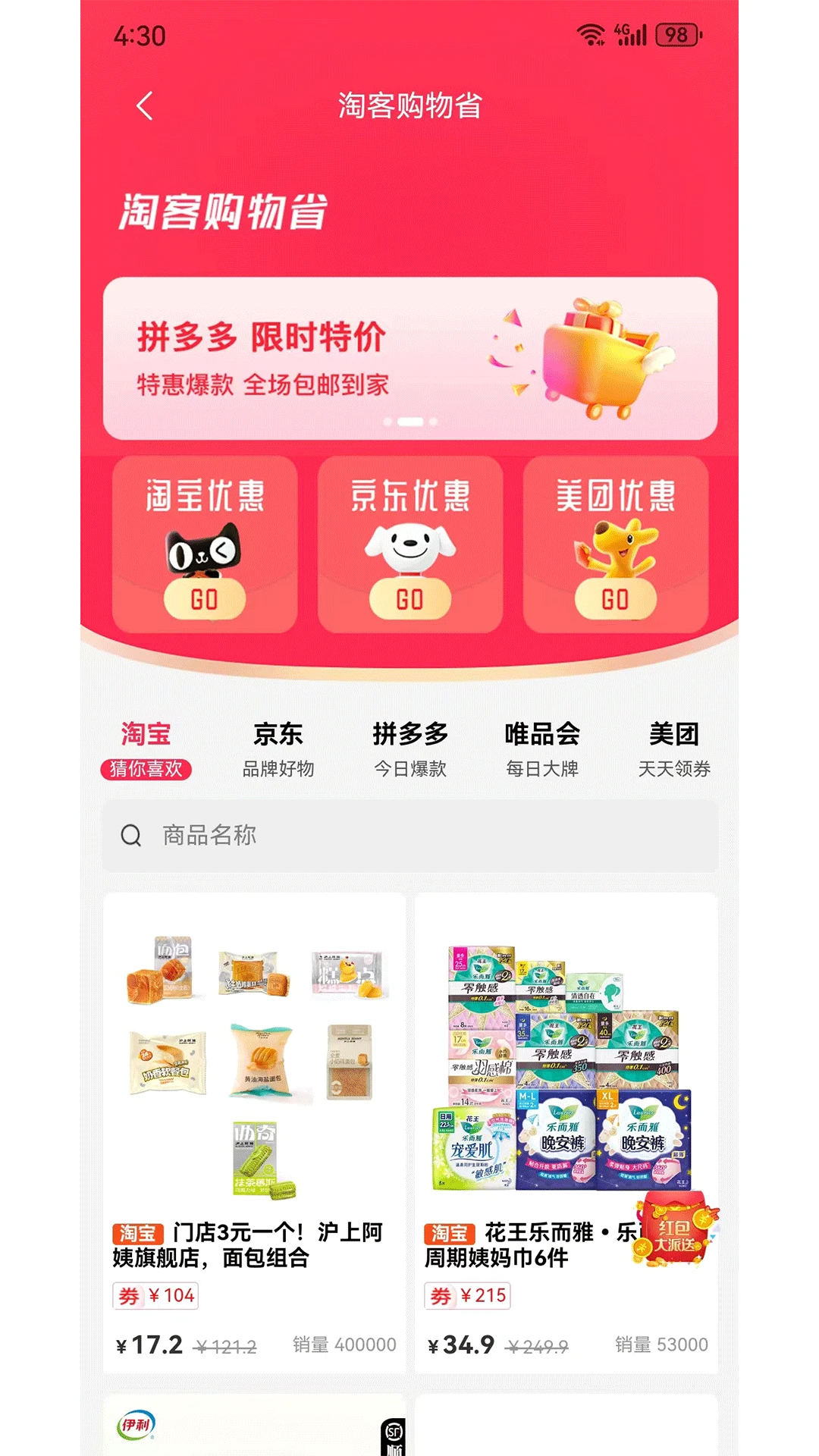 全品类覆盖:涵盖服装鞋帽、数码家电、母婴用品等20+大类商品,满足家庭全场景需求。