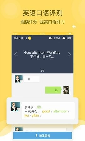 AI智能评测技术,实时纠正发音和语法错误。评测结果精确到音节和语法点,提供详细改进建议。