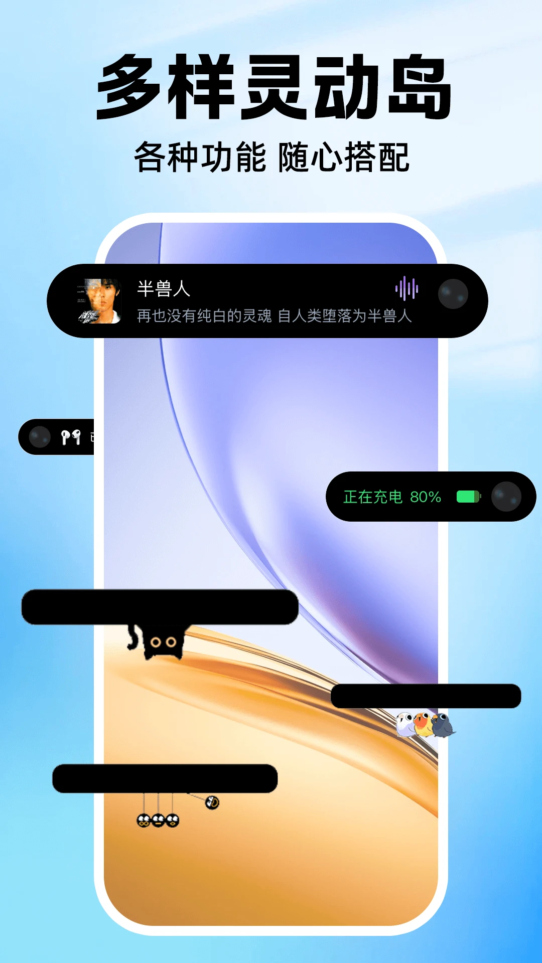 灵动岛功能模块:提供类似苹果灵动岛的交互体验,支持消息提醒、音乐控制等功能,让手机负一屏更具科技感。