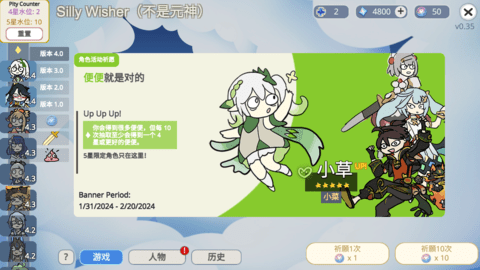 不是原神(Silly Wisher)是一款充满创意的同人模拟游戏,为玩家带来独特的原神抽卡体验。游戏采用夸张的抽象画风,搭配幽默风趣的主角形象,带你进入一个与原神相似却又充满恶搞元素的世界。在这里,你可以尽情享受抽卡的乐趣,体验十连出金的快感,收集心仪的角色卡牌。游戏完美还原了原神的抽卡机制,同时加入了大量搞笑元素,从角色设计到抽卡动画都充满欢乐。无论是原神老玩家还是喜欢轻松休闲游戏的新玩家,都能在这里找到属于自己的乐趣。