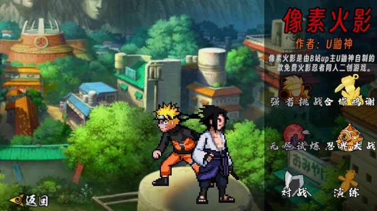 复古像素风格完美呈现火影忍者的经典场景和角色形象。