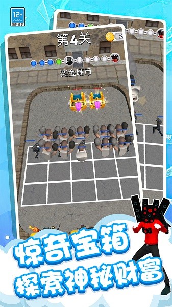 在这款创意十足的合成对战游戏中,玩家需要通过不断合成马桶人来解锁更强大的战斗单位。随着等级的提升,你将面对各种形态各异的boss挑战,每个boss都拥有独特的攻击方式和弱点。游戏采用高清卡通渲染技术,打造出一个色彩缤纷的奇幻世界,玩家可以自由调整视角来欣赏精美的场景细节。简单直观的操作方式让新手也能快速上手,而丰富的技能组合系统则为高端玩家提供了深度研究的空间。