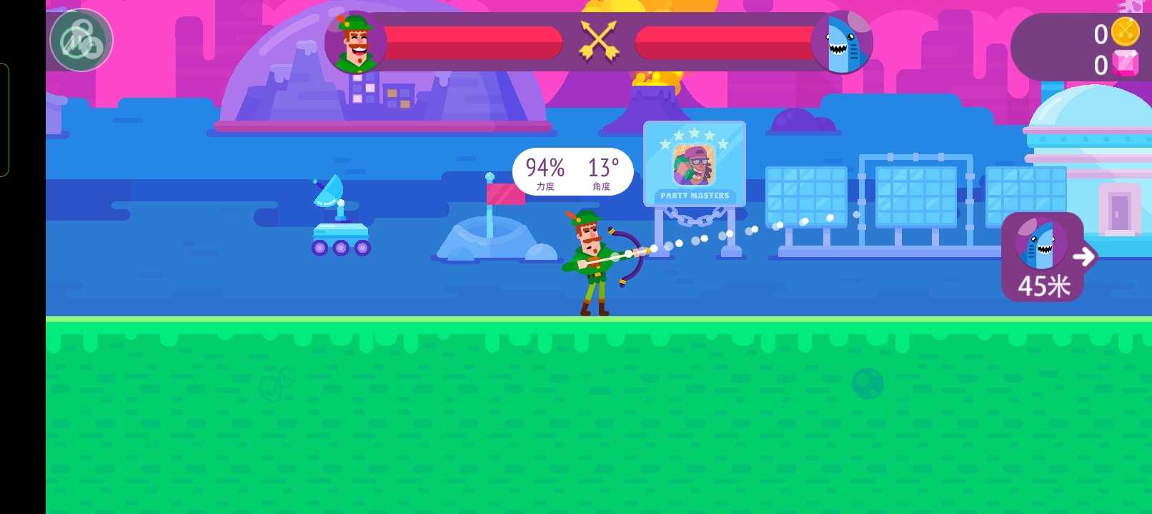 游戏采用了创新的弹射玩法系统,操作方式简单直观但极具深度。玩家只需按住屏幕拖动即可调整射击角度和力度,松开手指后武器就会发射出去。游戏提供了精准的力度指示器和角度标尺,帮助玩家更好地掌握射击技巧。随着游戏进程的推进,玩家还需要考虑风速、重力等环境因素,让每次射击都充满策略性。