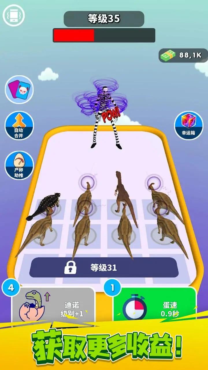 放置恐龙融合拥有许多独特的游戏特色。游戏提供了多样化的地图场景,从热带雨林到火山地带,每个地图都有独特的挑战和奖励。放置玩法让游戏体验非常轻松,玩家即使离线也能持续获得收益。简单的点击操作让游戏上手容易,但丰富的策略深度又能满足硬核玩家的需求。游戏收录了数十种恐龙图鉴,玩家可以不断收集和合成,创造出全新的恐龙种类。此外,游戏还定期更新内容,推出新的恐龙和玩法,保持游戏的新鲜感。无论是休闲玩家还是策略爱好者,都能在放置恐龙融合中找到属于自己的乐趣。