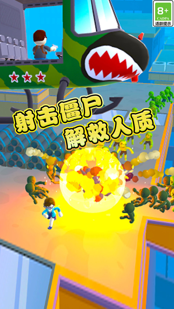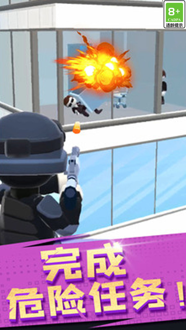 游戏采用极简的火柴人造型设计,主角以鲜明形象立于直升机上执行高危救援任务。玩家需要精准操控角色完成从单人到多人的人质营救行动。通过点击屏幕的射击机制,玩家可以击退追击的敌人,游戏在基础射击玩法上创新性地加入了环境互动元素。随着游戏进程,玩家能解锁更多特殊武器和技能,如狙击枪、火箭筒等强力装备,大大丰富了战斗体验。独特的物理引擎让每次射击和爆炸都产生逼真的效果反馈。