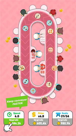 旋转寿司烹饪安卓版是由知名游戏开发团队精心打造的模拟经营类手游,以寿司制作为核心玩法,为玩家带来独特的烹饪体验。游戏采用高清3D建模技术,完美还原了寿司制作的每一个细节,从米饭的捏制到鱼生的切割,再到最后的摆盘装饰,每一步都充满真实感。玩家将扮演一名寿司厨师,通过完成顾客订单来提升自己的厨艺水平,解锁更多高级食材和烹饪工具。游戏还融入了店铺经营元素,玩家可以自由装饰自己的寿司店,吸引更多顾客光临。无论是寿司爱好者还是模拟游戏玩家,都能在这款游戏中找到乐趣。旋转寿司烹饪安卓版支持离线游玩,随时随地享受烹饪的快乐。
