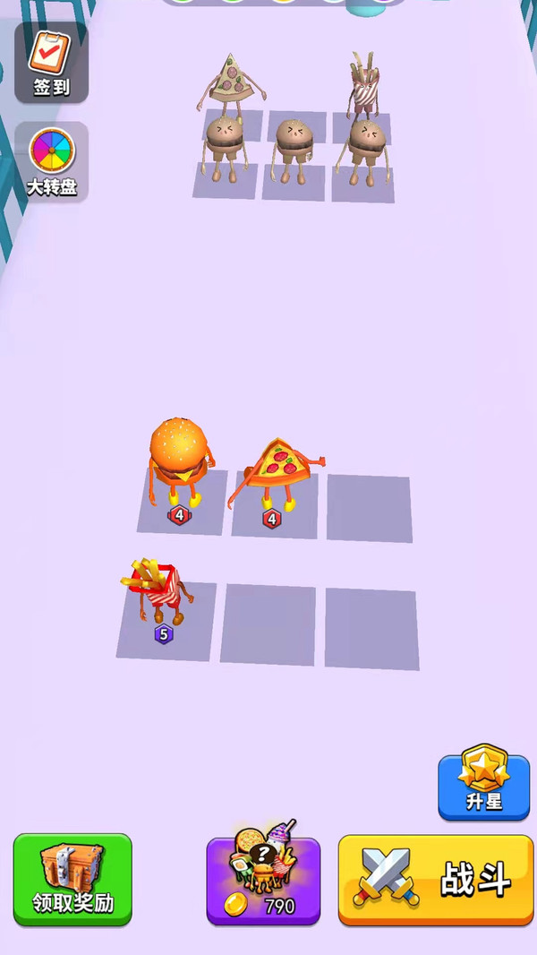 同样的汉堡包可以合成成新的战斗单位,战斗力大大增强,可玩性超高哦,随着合成次数的增加,还能解锁特殊外观;