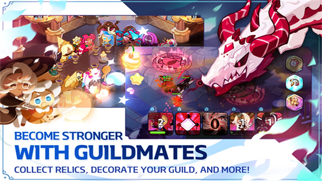 活用各种宝物与配料搭配,打造最强的饼干战队!游戏的战斗系统深度十足,玩家需要考虑阵容搭配、技能释放时机、站位调整等多方面因素。在王国竞技场、守护之战、大乱斗、公会讨伐战等多样化的战斗模式中,体验策略与操作的完美结合。