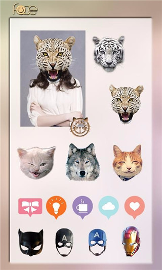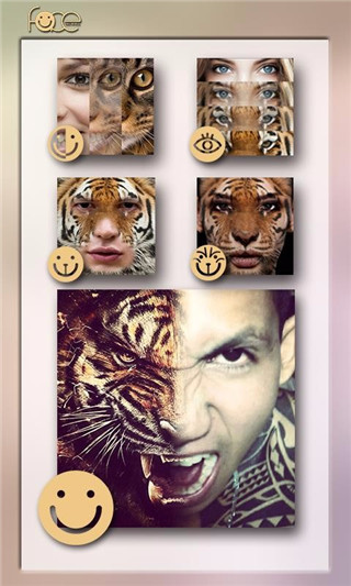 它能将你照片中的人脸,变成半边动物脸,还可更换动物眼睛、鼻子、嘴等部位,或者让人脸跟动物脸无缝融合,使平淡无奇的照片变得趣味丛生,过目难忘。无论是自拍还是合影,都能为你带来意想不到的惊喜效果。