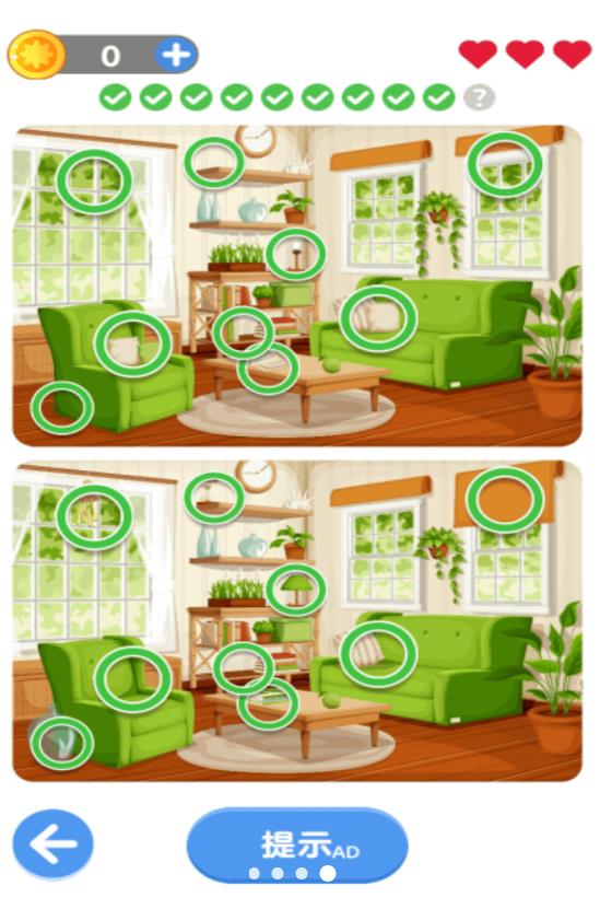 游戏采用渐进式难度设计,从简单到复杂循序渐进,让玩家能够逐步提升观察能力。紧张刺激的倒计时系统为游戏增添了竞技元素,玩家需要在有限时间内快速找出差异点。游戏操作极其简单直观,只需点击屏幕即可完成所有操作,即使是小朋友也能轻松上手。清爽简洁的界面设计让玩家能够专注于游戏内容本身,不会被复杂的UI分散注意力。