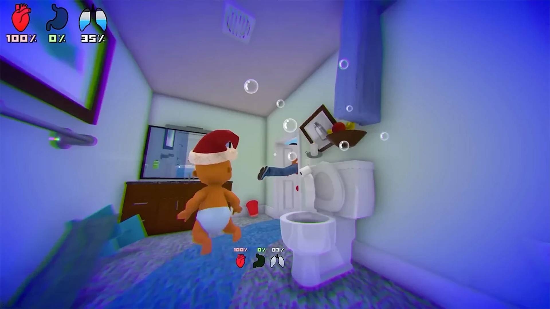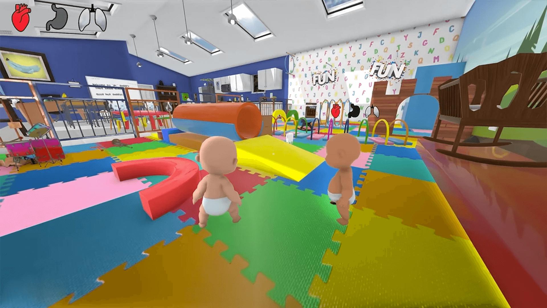 在这款游戏中,婴儿拥有令人惊叹的灵活行动能力,可以在室内外各种场景中自由探索。无论是奔跑跳跃、攀爬家具,还是在狭小空间里爬行穿梭,婴儿都能轻松应对。游戏精心设计了多样化的互动动作,比如可爱的吸气吐气表情,让角色形象更加生动鲜活。每个场景都充满细节,从客厅的沙发到花园的灌木丛,都为玩家提供了丰富的探索空间。